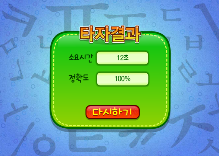 하지만 아쉬운 점도 있습니다. 바로 분당 타수가 없다는 점입니다. 누군가 경쟁을 해야 빠르게 실력이 늘텐데 말이죠. 이부분은 추가되었으면 좋겠네요.