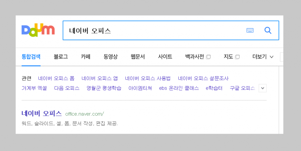 Naver Office에 접속하기 위해 네이버에서 "네이버 오피스"라고 검색하면 결과 중 상위에 결과가 나옵니다. 해당 결과를 클릭하면 바로 이동할 수 있습니다. 물론 위에서 제공한 링크를 사용할 수도 있습니다. 사용하려면 네이버 아이디가 필요하기 때문에 유의하시길 바랍니다.
