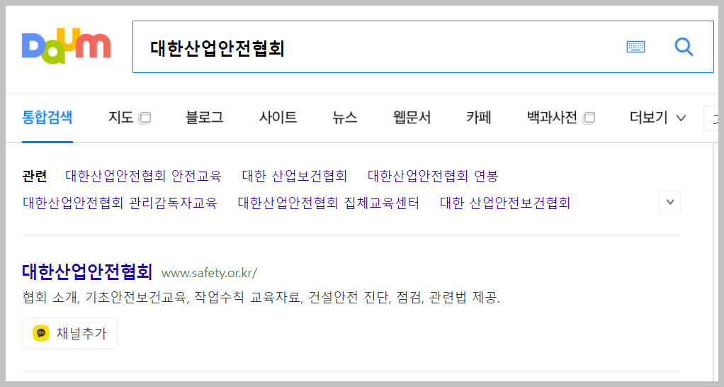 위와 같이 검색창에 "대한산업안전협회"를 입력하면 첫 번째 검색 결과로 해당 사이트에 쉽게 접속할 수 있습니다. 또는 아래 링크를 남겨둘테니 참고하시길 바랍니다.