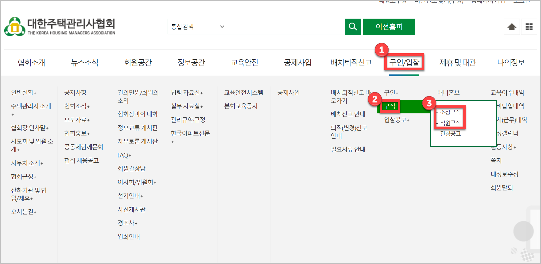 협회의 홈페이지에 들어가기위해서는 대형 포털 사이트에서 '대한 주택관리사 협회'라고 검색을 하시면 쉽게 들어가실 수 있습니다.