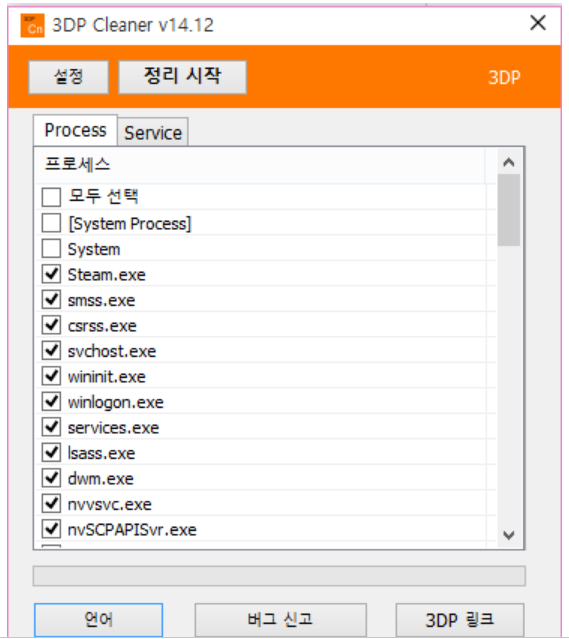 추가적으로 Cleaner라는 것도 있습니다. 이 프로그램은 현재 실행 중인 프로세스나 서비스를 종료하는 기능이 있습니다. 불필요한 프로세스/서비스를 종료하는 도구라고 볼 수 있겠네요. 무거운 앱을 실행하기 전에 한 번 실행해두면 좋을것 같네요.