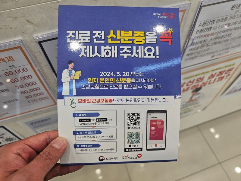 얼마 전 작은 딸아이와 함께 병원에 갔을 때, 지갑을 집에 두고 나와 신분증이 없다는 사실을 깨달은 적이 있습니다. 그 순간 '진료를 못 받으면 어쩌지?'라는 생각이 스치더군요. 그런데 막상 알아보니 신분증을 두고 와도 당황하지 않고 대처할 수 있는 방법이 여러 가지 있었습니다. 특히 2024년 5월 20일부터 시행된 본인확인 의무화 제도 이후, 신분증 확인 절차가 강화되면서 미리 알아두면 유용한 정보입니다. 병원 신분증 없을때 이렇게 하면 됩니다.