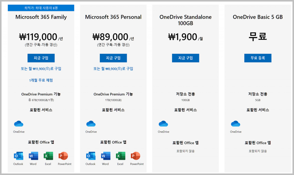 100GB를 추가하는 데는 월 1900원 정도가 필요하며, 이 비용은 다른 스토리지 프로그램에 비해 비싼 편은 아닙니다. 특히 이 요금제의 특징 중 하나는 Microsoft 365 Family를 구매하면 1TB의 용량과 Office 365 서비스 6개를 제공한다는 점입니다. 저도 이 요금제를 사용하고 있습니다.