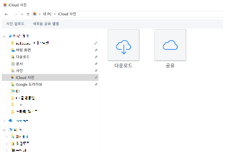 방법 2: 파일 탐색기를 열고 '사진' -> 'iCloud 사진' -> '다운로드'를 선택합니다.