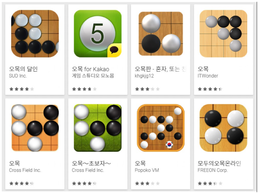 요즘은 컴퓨터로만 할 수 있는 게임이 아니라면 대부분 스마트폰에서 하는 것 같습니다. 특히 이렇게 간단한 것은 더더욱 그런 것 같아요. 그래서 플레이스토어나 앱스토어를 찾아보면 위와 같이 다양한 종류를 확인할 수 있습니다. 이것 들 중 평이 제일 괜찮은 것으로 선택해도 좋을 것 같네요.