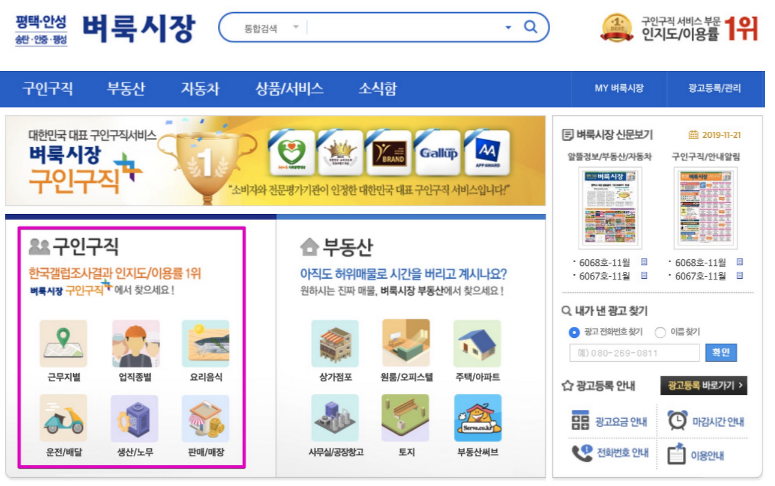 이는 평택 벼룩시장도 마찬가지 입니다. 현재 온라인 홈페이지를 운영하여 지역 소식, 구인구직, 자동차등 다양한 방면으로 정보를 제공하고 있습니다. 그중 가장 많은 분들이 찾는 것은 역시 일자리 공고입니다.