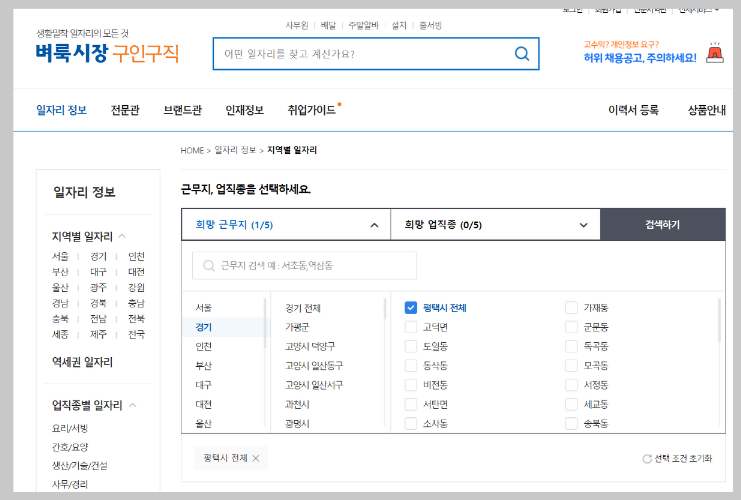 위 링크를 통해 평택 일자리 사이트로 바로 이동할 수 있습니다.