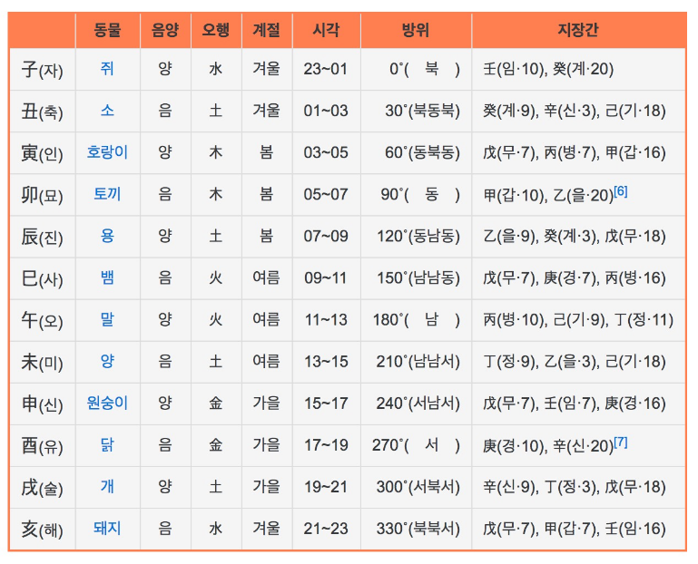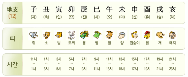 - 자, 축, 인, 묘, 진, 사, 오, 미, 신, 유, 술, 해