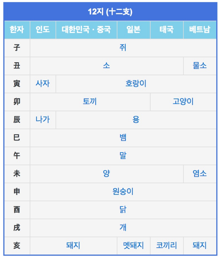 이러한 12띠 동물 순서는 우리나라에서의 짝을 나타내며, 동아시아 문화권 내에서도 환경에 따라 약간씩 차이가 있습니다.
